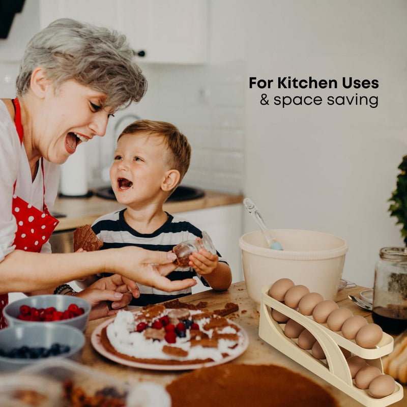 The Roll-Down Double-layer Egg Dispenser is convenient to use in fridges, freezers, and kitchen cabinets. It is a great way to add storage and organize, ideal for sorting and storing eggs.