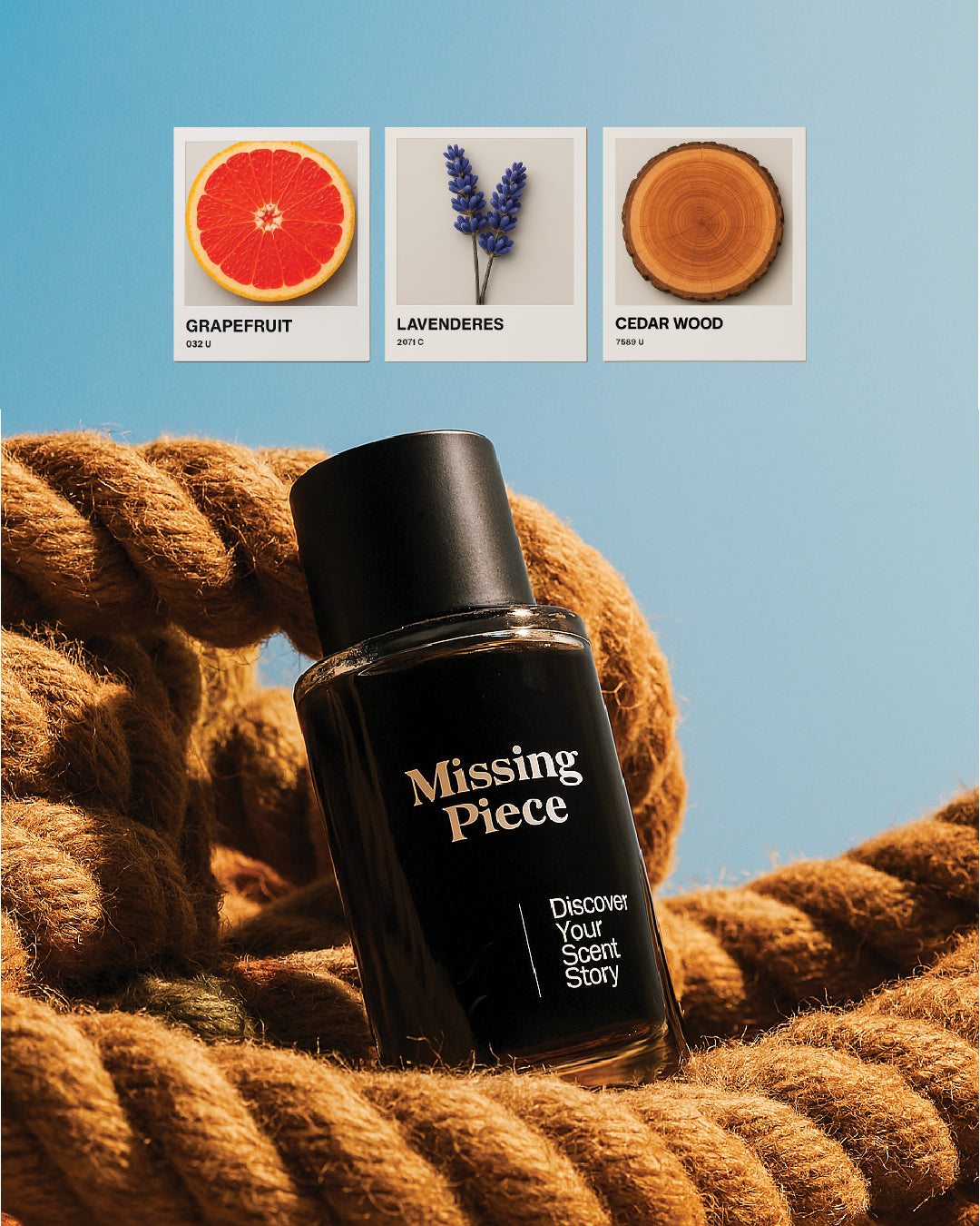 MISSING PIECE IS A FRESH AQUA FRAGRANCE MADE FOR YOUR EVERYDAY HUSTLE. ENERGIZING CITRUS MEETS SPICY FLORALS AND SMOKY WOODS, CREATING A SIGNATURE SCENT YOU’LL NEVER WANT TO STEP OUT WITHOUT.