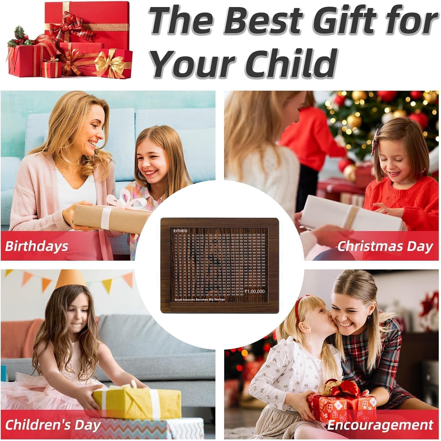 Puzzle Berry wooden piggy bank is the perfect savings tool for kids and adults. Track your financial goals with customizable paper inserts to mark the amount you want to save. It holds up to 10,000, motivating kids to develop good savings habits while encouraging adults to stick to their financial goals.